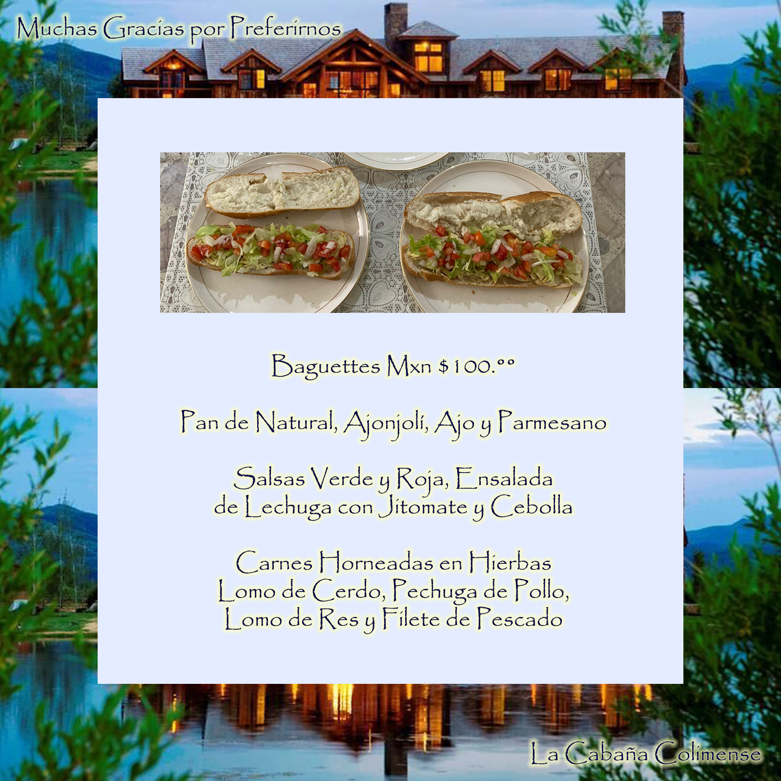 Con la finalidad de evitar inventarios en alimentos innecesarios, ocupando espacio y arriesgándonos a tener mermas, les pedimos a nuestros clientes escribirnos con tiempo anticipado, de preferencia un día antes, para programar la preparación de sus alimentos, ya que en la zona en que estamos instalados tenemos la fortuna de contar con nuestros proveedores a corta distancia, agradeciendo de antemano su comprensión.